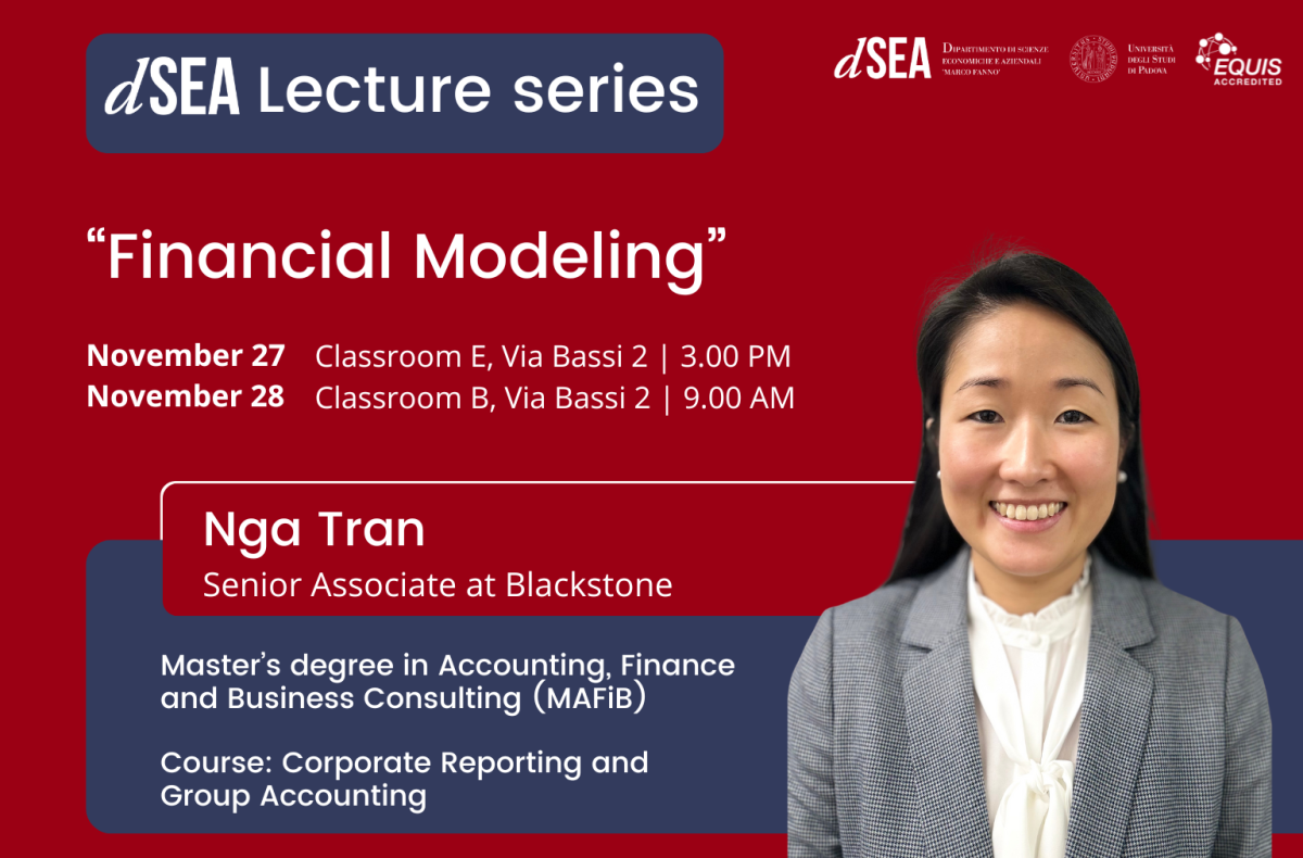 We are pleased to welcome Nga Tran, Senior Associate at Blackstone, as guest speaker for this lecture series as part of the Corporate Reporting and Group Accounting course, taught by Prof. Amedeo Pugliese, included in our Master’s degree in Accounting, Finance and Business Consulting (MAFiB).
