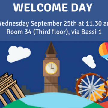 On Wednesday, September 25th we kindly invite all the incoming students to attend our Welcome Day.The appointment is at 11.30 AM at the Tower "C3", Via Bassi 1, Room 34 (third floor).This event will give to the foreign students the chance to get to know each other and inform about different aspects