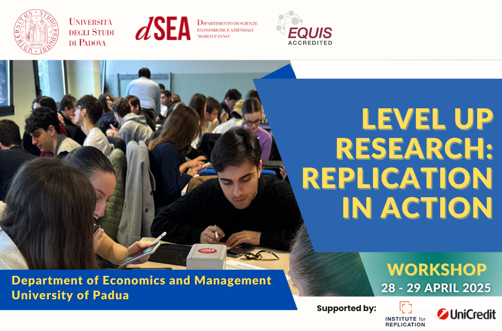 The event, organized by our Department DSEA, in partnership with the Institute of Replication and supported by the UniCredit Foundation, will be held in our Active Learning & Teaching Classroom at Via Bassi 1, in Padua (Italy), on 28-29 April 2025.
